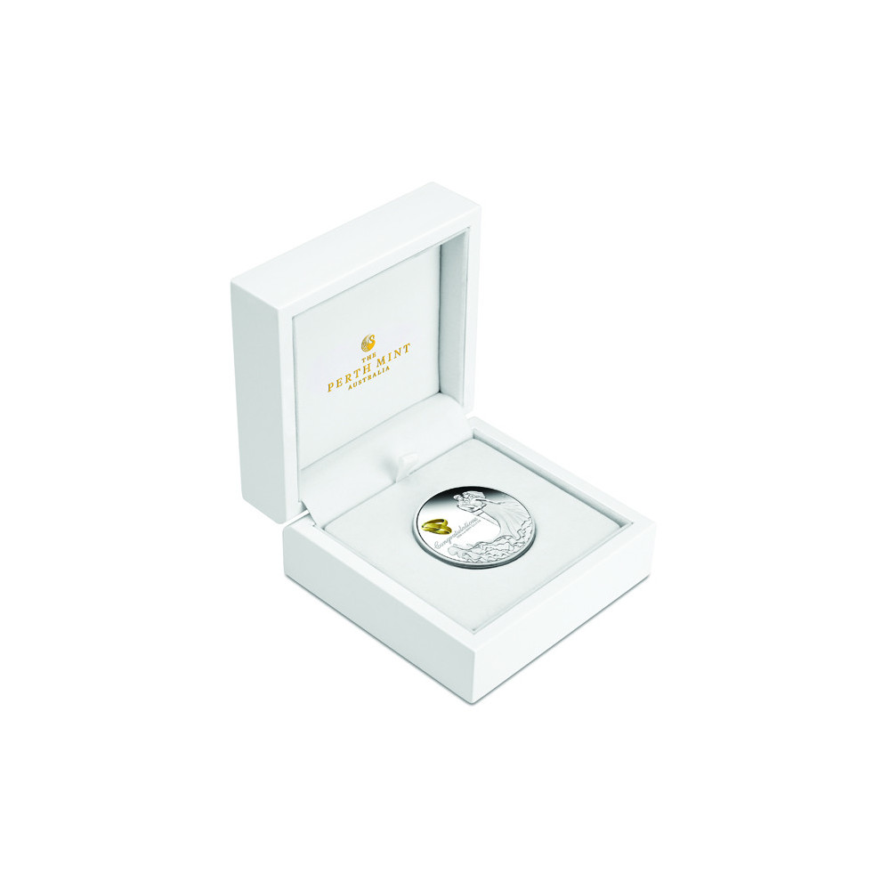 Questa bellissima moneta d'argento è un altro gioiello della "Perth Mint Australia". Nuova per il 2026, è adatta per augurare un matrimonio perfetto.